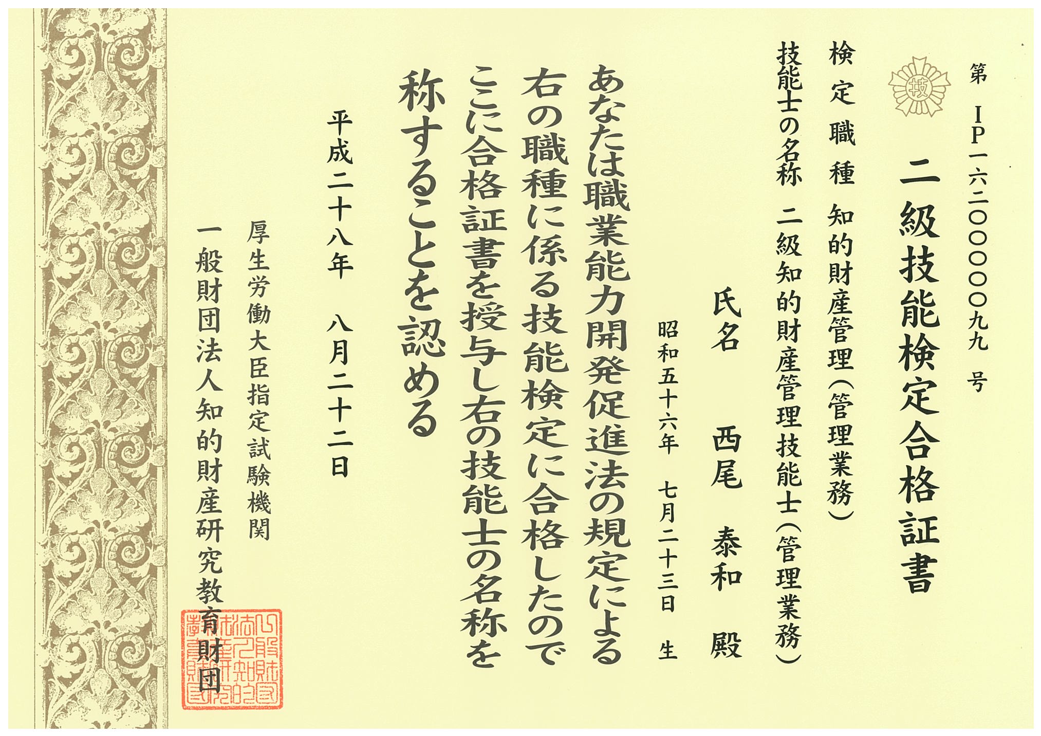 - 国家資格 2級知的財産管理技能士 [JPG], 2016-08